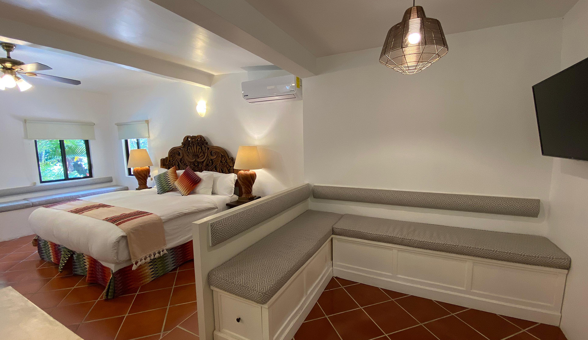 Habitaciones hermosamente decoradas, equipadas con cocineta y ubicadas en área de jardín